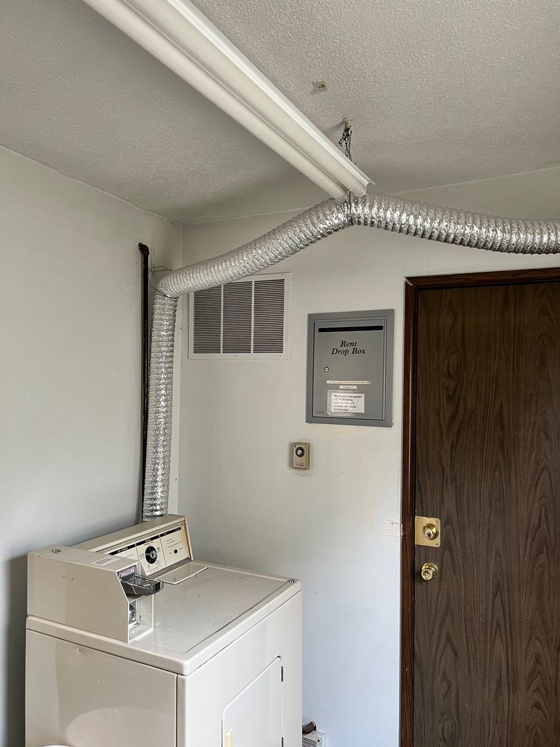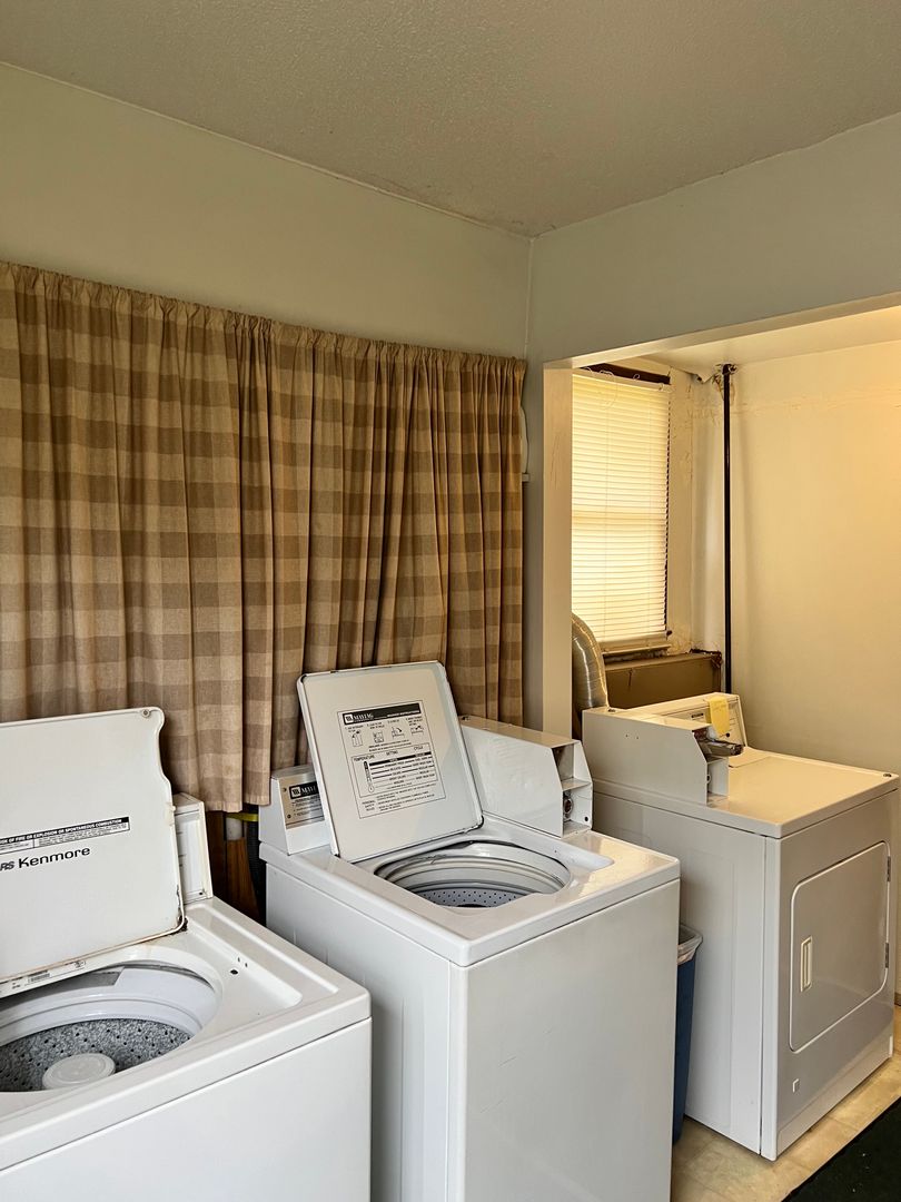 Coin laundry on property in another building.